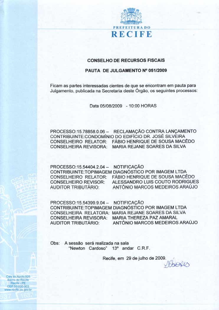Pauta de Julgamento nº 009/07 - CRF - Dia 26/02/2007