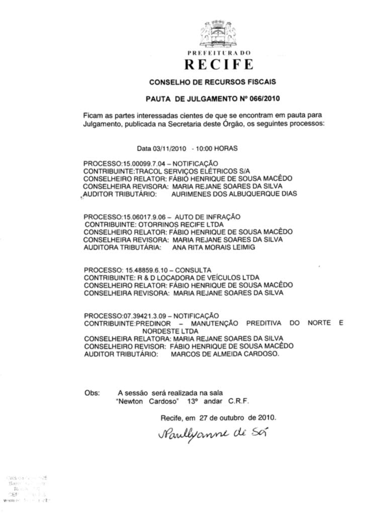 Pauta de Julgamento nº 066/06 - CRF - Dia 19/12/2006