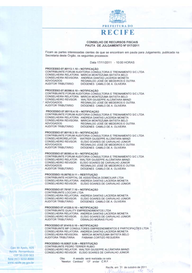 Pauta de Julgamento nº 017/07 - CRF - Dia 21/03/2007